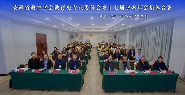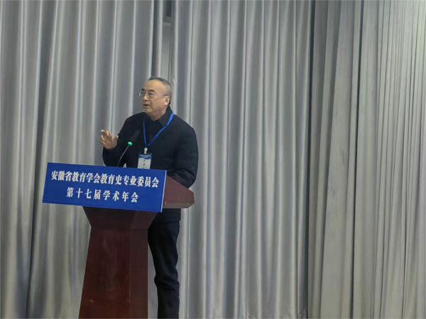 本网讯(通讯员:李平)2025年12月20日至 21日,安徽省教育学会教育史专业委员会第十七届学术年会在安庆师范大学举办。安徽省知名教育学者、安徽省教育学会教育史专业委员会名誉理事长、我校大学生素质教育研究中心研究员朱镜人教授应邀出席大会。
