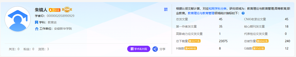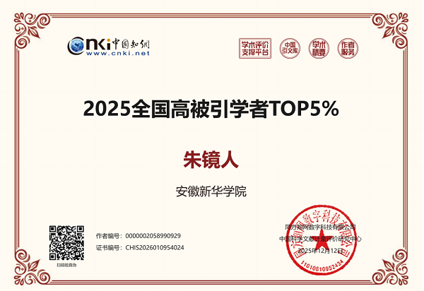 本网讯(通讯员:李彩平)近日,中国知网中国科学文献计量评价研究中心公布了“2025中国知网高被引学者”名单,大学生素质教育研究中心朱镜人教授入选“2025中国知网高被引学者”TOP5%,也是我校本次入选唯一人文社科类学者。